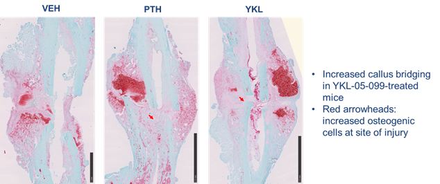 Salt Inducible Kinase Inhibitors as a Potential Novel Therapeutic for Fracture Repair: Greater than 6.8 million fractures are reported annually in the United States, accounting for 20% of all musculoskeletal injuries. Approximately 10% of fractures will experience delayed- or non-union. Parathyroid Hormone (PTH) analogues are anabolic treatments for osteoporosis, which have shown efficacy in stimulating fracture repair in animal models and in patients with chronic nonunion. A key step in PTH intracellular action is its ability to inhibit the activity of salt inducible kinases (SIKs). Development of potent and selective small-molecule SIK inhibitors to unmet the clinical need for osteoinductive agents to enhance fracture repair is critical. As an innovative alternative to the limited options available today, the proposed bone targeting through Sik2/3 Inhibitors retains efficacy in callus formation and represents a paradigm shift in fracture repair management.