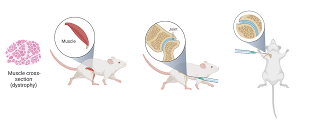 Relaxin-2 as a Novel Protein Therapeutic for the Treatment of Arthrofibrosis: Treatment options for arthrofibrosis are limited. Specifically, treatment for shoulder arthrofibrosis requires months to years of physical therapy or even surgical procedures. Relaxin is a hormone that is primarily released during pregnancy, which helps expand the pelvis and increases the elasticity of ligaments. Thus, hRLX-2 effects are being studied in post-iatrogenic joint contractures in wild-type rats and in joint contractures induced by rats suffering from Duchenne Muscular Dystrophy.