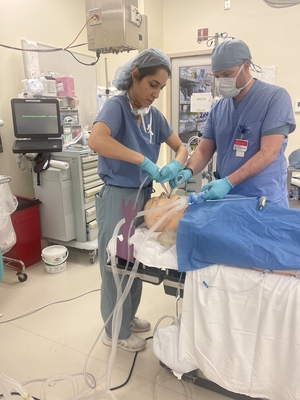 The Center hosts training sessions and courses for various learners in the medical center. From academic days for our department’s CA-1 residents to ultrasound courses for other departments, including Nephrology and Hospital Medicine, CERTAIN emphasizes a multimodal teaching approach that utilizes online modules hosted on a learning management system developed and managed by the department, in-person lectures and case discussions, and hands-on practice on simulators and live models. These training sessions and courses occur in our dedicated Anesthesia Skills Lab and strive to improve learners’ knowledge, skills, and workflow understanding for procedures ranging from intubations to ultrasound-guided vascular access to echocardiography. With CERTAIN’s support, Dr. Ruma Bose was awarded a Foundation for Anesthesia Education and Research grant to fund the development of a rescue ultrasound curriculum for senior residents that uses mixed reality.