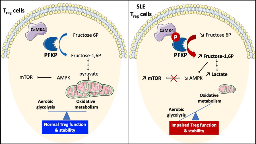 d. Scherlinger, M., Pan, W., Hisada, R., Boulougoura, A., Yoshida, N., Vukelic, M., Umeda, M., Krishfield, S., Tsokos, M. G., Tsokos, G. C. Phosphofructokinase P fine-tunes T regulatory cell metabolism, function and stability in systemic autoimmunity. Science Adv. 8, eadc9657 (2022)