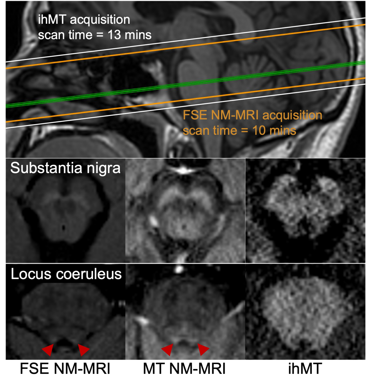 Application of neuromelanin MRI (NM-MRI) in the brainstem has been utilized in studies of neurological disorders such as Parkinson's disease. We successfully demonstrated ihMT MRI can be applied for assessment of NM and myelin in the brainstem. Presented at ISMRM's annual meeting.