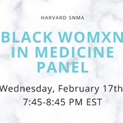 Event: Black Womxn in Medicine - Feb 17th, 2021 February 21, 2021 Wednesday, February 17th from 7:45 – 8:45 PM EST Though SNMA dinners with physicians are on a temporary hiatus, we wanted to recreate the experience ~virtually~. Chat with Black womxn physicians... Read More Event: Black Womxn in Medicine - Feb 17th, 2021
