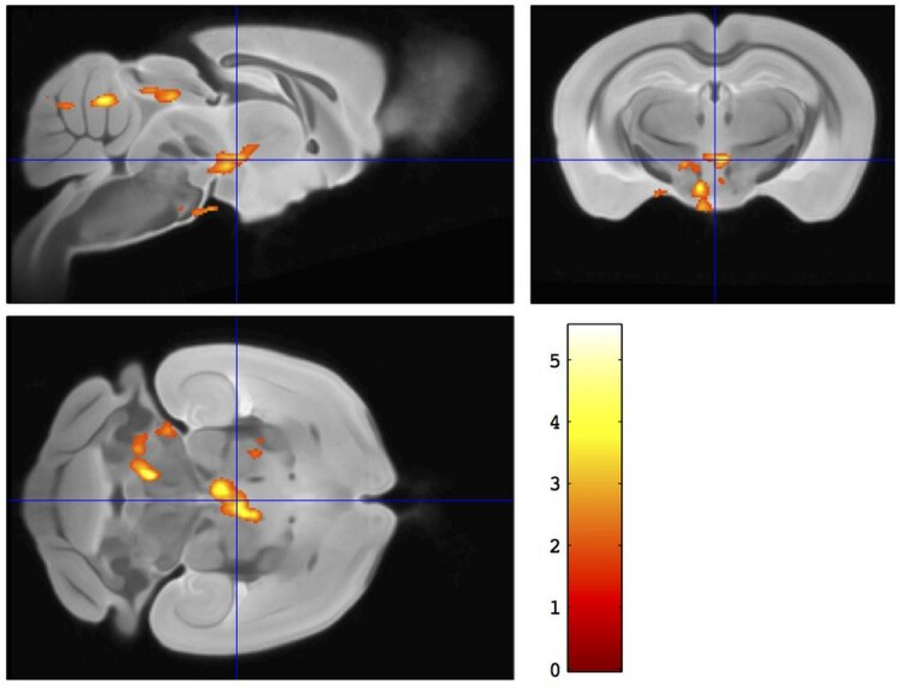 Regions that show activation during CMG peak include the Pontine Micturition Center (PMC), the Periaqueductal Gray (PAG) and the Hypothalamus. The PMC is a small center in the hindbrain that we now know activates bladder contractions, whereas the PAG receives neural inputs from the bladder and other brain regions, integrates these signals and activates the PMC. The lateral Hypothalamus (LHA) also project to the PMC and our neuro-urology colleagues have shown optogenetic activation of glutamatergic LHA neurons can cause voiding. See also the work underway in VERSTEGEN LAB, where our colleagues are making tremendous progress in defining the neural pathways that control micturition. See too, their recent publication.
