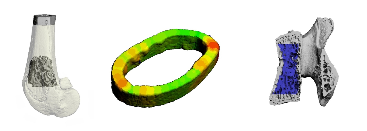 Our lab offers ex vivo microCT imaging services for the assessment of bone microarchitecture and mineral density. Our facility has two Scanco µCT40 scanners that allow for scanning at resolutions down to 6 μm3 and can scan specimens up to 36 mm in diameter and 75 mm in length. Our expert staff work closely with academic and industry clients to meet their skeletal phenotyping needs. Typical analyses that we perform include measuring the trabecular microarchitecture and cortical morphology of bones, however we can customize our analysis to meet a client’s needs. Bones that we typically analyze in rodents and other small animals include the femur, tibia, and lumbar vertebrae, however other regions can also be analyzed based on the focus area of the study. At the completion of our analysis, we provide clients with the microCT results organized in a spreadsheet, 2D and 3D images of samples, and a short report summarizing the results and methods for the study. We also provide clients with consultation on the interpretation of the microCT results. If you are interested in learning more about using microCT for the assessment of bones, you can find more information in the guidelines that were written by Dr. Bouxsein and colleagues