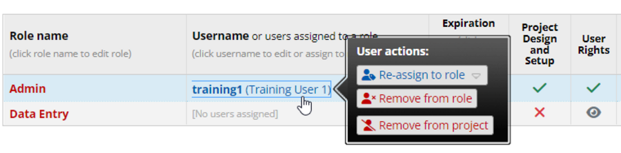 Until now, if a user was in a Role, they had to be removed from the role before they could be removed from the project. Even if they were not in a role, the user rights had to be opened to remove a user from the project. Now, a user can be removed by clicking on their name and selecting 'Remove from Project' from the pop-up menu.