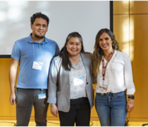 Three 2022 BIDMC Research Retreat attendees won the “free services at the BIDMC Core of your choice” raffle. Here are the names of the lucky winners: Vanessa Azevedo Voltarelli, Papa Anderson, and Muneeb Ahmed. (Photo: Vanessa Voltarelli (right) with Tanya Santos (Director, ResOps) and Jonathan Figueroa (ResOps) )