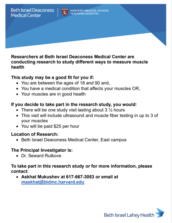 Interested? Email maskhat@bidmc.harvard.edu or call 617-667-3053