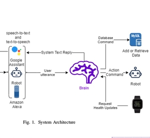 Abstract—There has been a tremendous increase in the costs of caring for older adults owing to the fact that societies are aging around around the world. This has led to a decrease in the number of caregivers who are able to assist. Investigative studies indicate that older adults require social as well as physical support for their well-being which prompted researchers to use social and cognitive robots and advanced human machine interaction devices. However, most of these studies have shortcomings when it comes to providing means of a natural interaction with the machine. With speech being the most natural way for human communication and the huge developments in the Internet of Things and smart homes, equipping a robotic system with powerful natural speech interaction capabilities to maintain a conversation with an elderly while being linked to other smart home devices shows a promising direction. This paper describes a scalable and expandable system with main goal of designing a natural speech-enabled system for older adults that is capable of linking to multiple active agents with minimal integration efforts. The system makes use of the power of commercially available digital assistant systems, integrated with an intelligent conversational agent, robotics, and smart wearables. The main advantage of the system is that it could provide a portion of the population, namely older adults and the disabled, the flexibility of interacting naturally with powerful social robots in smart home environments, hence providing them with much needed independence.